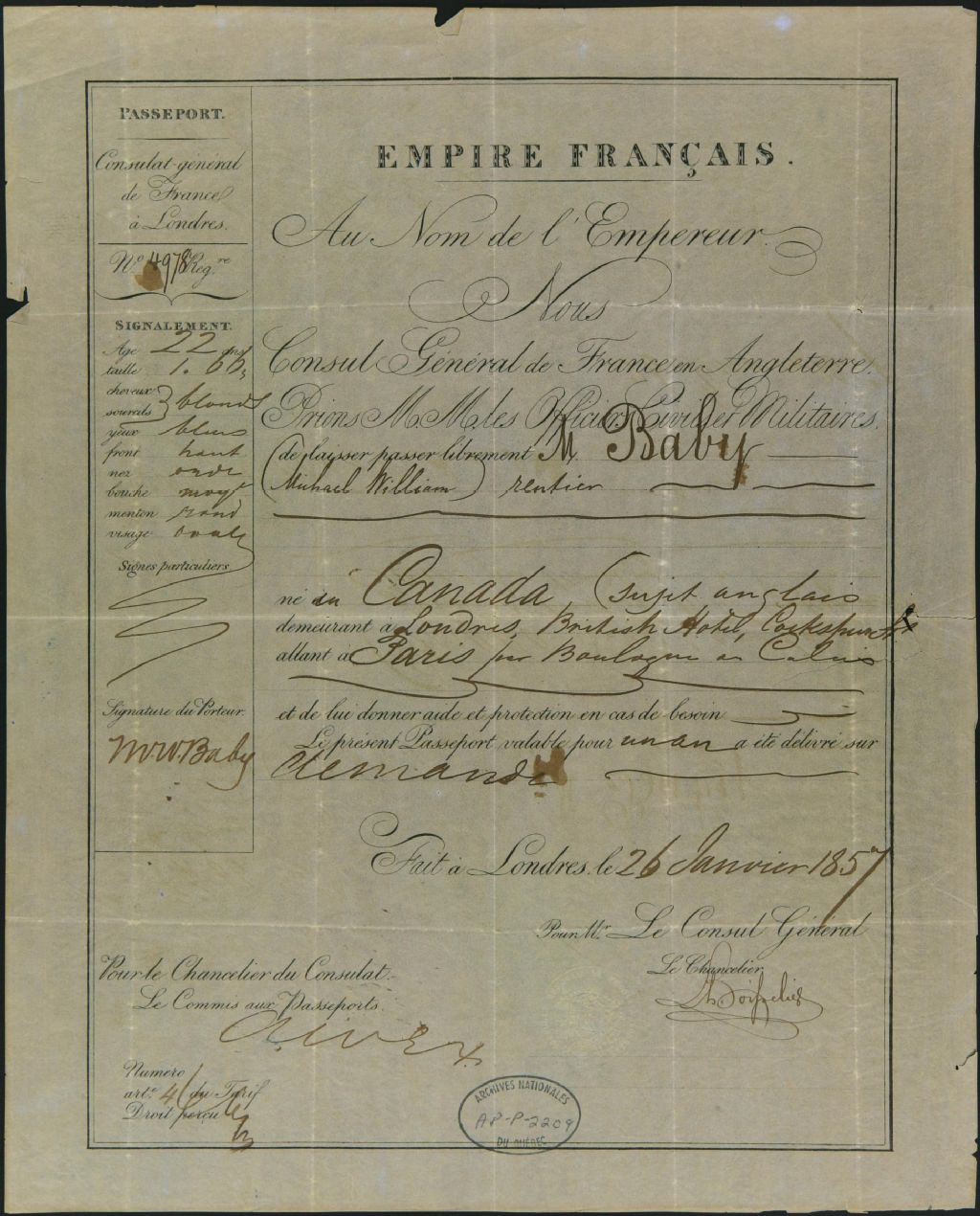 - Passeport émis par le consulat général de France en Angleterre. Grand format
