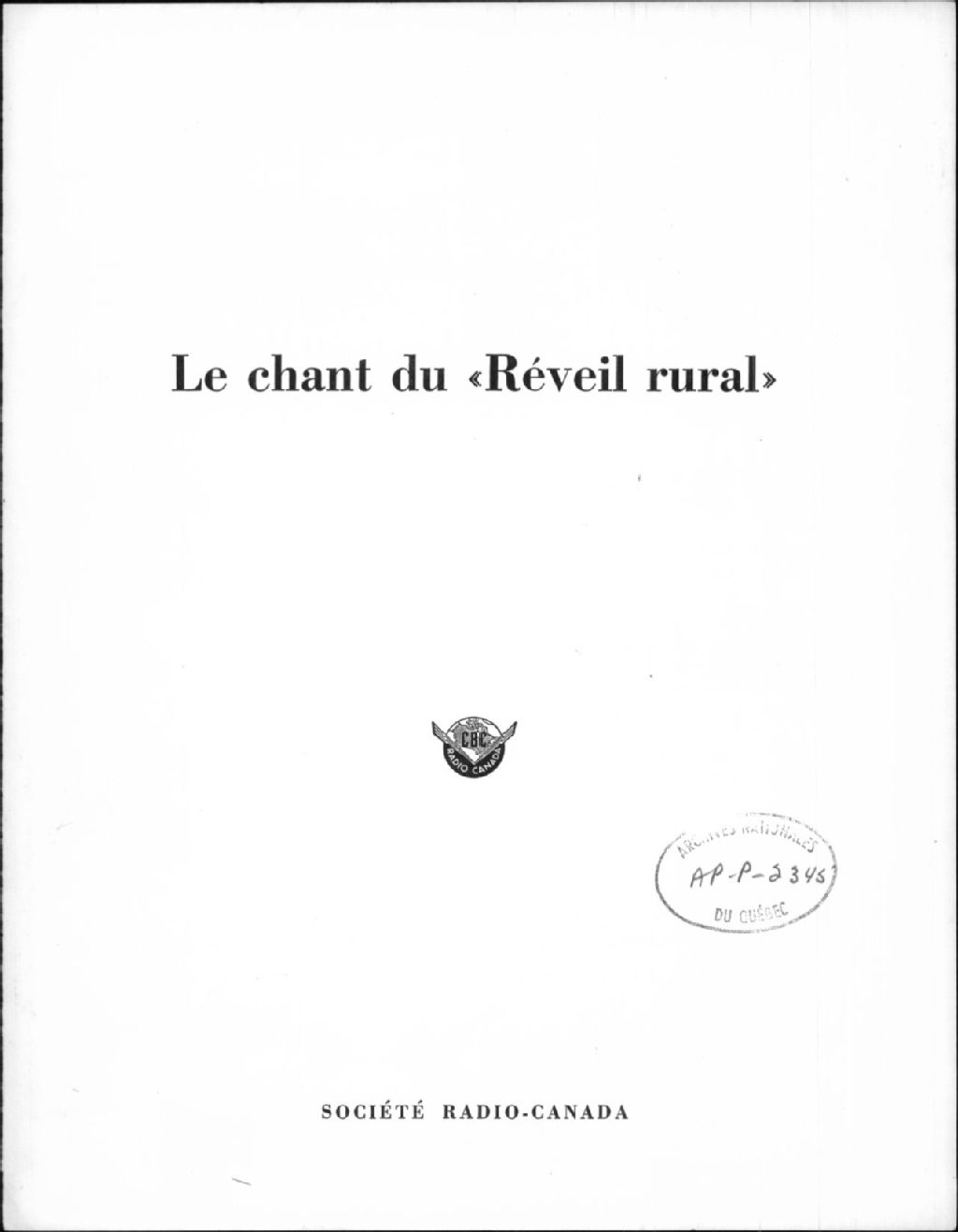 - Thème de l'émission radiophonique "Le Réveil rural" diffusée à Radio-Canada: poème d'Alfred Desrochers, manuscrit original; musique d'Oscar O'Brien, version finale