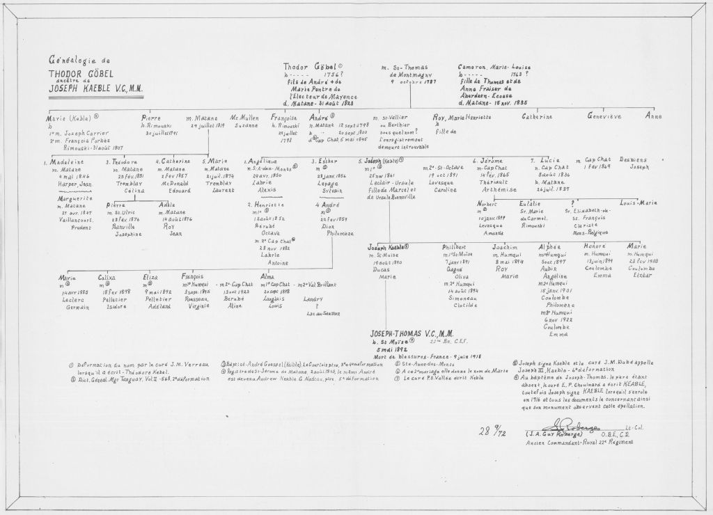 - Ce dossier contient des documents relatifs à la généalogie de la famille Kaeble de Thodor Gobel (1756 ?) à Joseph Thomas Kaeble (1918)