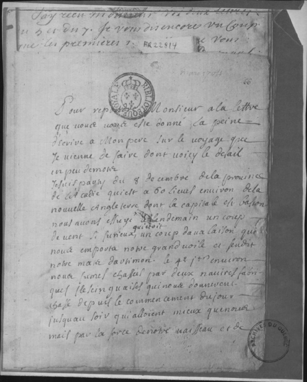 - Ce dossier est composé d'une lettre d'Antoine de la Boularderie Le Poupet (1674-1738), à un destinataire inconnu concernant les détails de son voyage en mer dont des escarmouches avec les Anglais: Acadie, Cap Finistère, France, il mentionne L'Éléphant (photostats) 4 pages