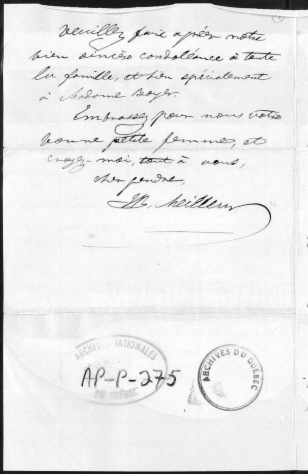 - Ce dossier est composé de deux lettres adressées à Monsieur Boyer de son beau-père, le Dr Jean-Baptiste Meilleur