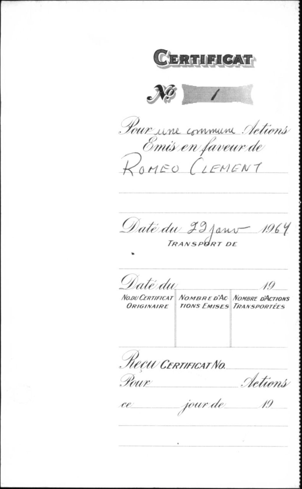 - La première partie de ce dossier contient des actions émises dans les années soixantes, des documents admistratifs concernant la Banque canadienne nationale, des certificats d'achat d'actions du Canadien de Thetford limité (de Thetford Mines), des procès-verbaux de réunion de cet dernière compagnie, des notes manuscrites, une liste des actionnaires, un document censuré concernant la même compagnie (p. 94), plusieurs communiqués concernant les réunions de la compagnie, des procurations.Le document concernant la famille Rastel de Rocheblave qui couvre une période allant de 1267 à 1822 environ (commençant à la p. 104), contient des notes manuscrites et généalogiques plutôt désordonnées sur cette famille, quelques coupures de journaux (dont une concernant les armoiries de la famille), une bibliographie détaillée, une lettre datée 1800 d'Adhémart Martin ainsi que le testament de Pierre-Louis Rocheblave (dactylographié)
