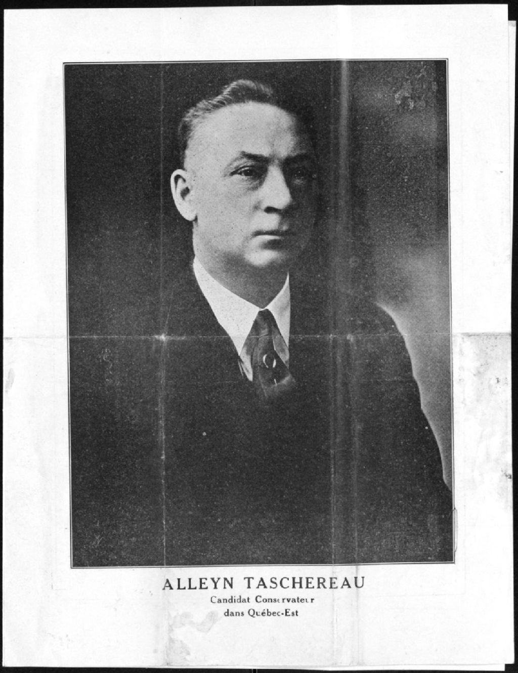 - Ce dossier est composé d'un message écrit par Alleyn Taschereau, candidat conservateur dans Québec-Est, pour les électeurs et électrices de son comté, ce candidat ne semble pas avoir été élu