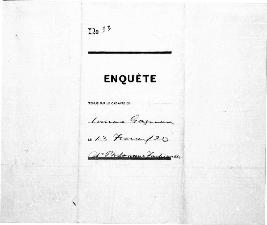 - Ce dossier regroupe des documents concernant l¿enquête du coroner relative au décès d¿Aurore Gagnon, les procès intentés à Marie-Anne Houde et à Télesphore Gagnon ainsi que l¿emprisonnement et la sentence d¿exécution (commuée en emprisonnement à vie) de Marie-Anne Houde. Le dossier est notamment constitué d¿actes d¿accusation, de correspondance, de procès-verbaux, de jugements, de mandats, de témoignages entendus lors des procès et d¿extraits de registres de baptêmes, mariages et sépultures.Dossiers de la Cour des sessions de la paix, greffe de Québec, matières criminelles en général, pièces numéros 247726 à 247733, images 39 à 53Dossiers de la Cour des sessions de la paix, greffe de Québec, matières criminelles en général, pièces numéros 277508 à 277533 et 277535, images 54 à 104Dossiers de la Cour des sessions de la paix, greffe de Québec, matières criminelles en général, pièces numéros 278068 à 278072, images 105 à 114Dossiers de la Cour des sessions de la paix, greffe de Québec, matières criminelles en général, pièces numéros 278616 à 278628, images 115 à 175Dossiers de la Cour des sessions de la paix, greffe de Québec, Bureau de la paix, le roi vs Télesphore Gagnon, accusation d¿homicide involontaire coupable, instruction préliminaire, images 176 à 273Cour du banc du Roi, greffe de Québec, matières criminelles en général, le Roi contre Marie-Anne Houde, preuve de la Couronne, images 274 à 459Cour du banc du Roi, greffe de Québec, matières criminelles en général, le Roi contre Télesphore Gagnon, preuve de la Couronne, images 460 à 642Cour du banc du Roi, greffe de Québec, matières criminelles en général, témoignages entendus, procès Marie-Anne Houde et Télesphore Gagnon, images 643 à 1267Registres des procès-verbaux d¿audiences de la Cour du banc du roi, juridiction criminelle, district de Québec, images 1268 à 1328