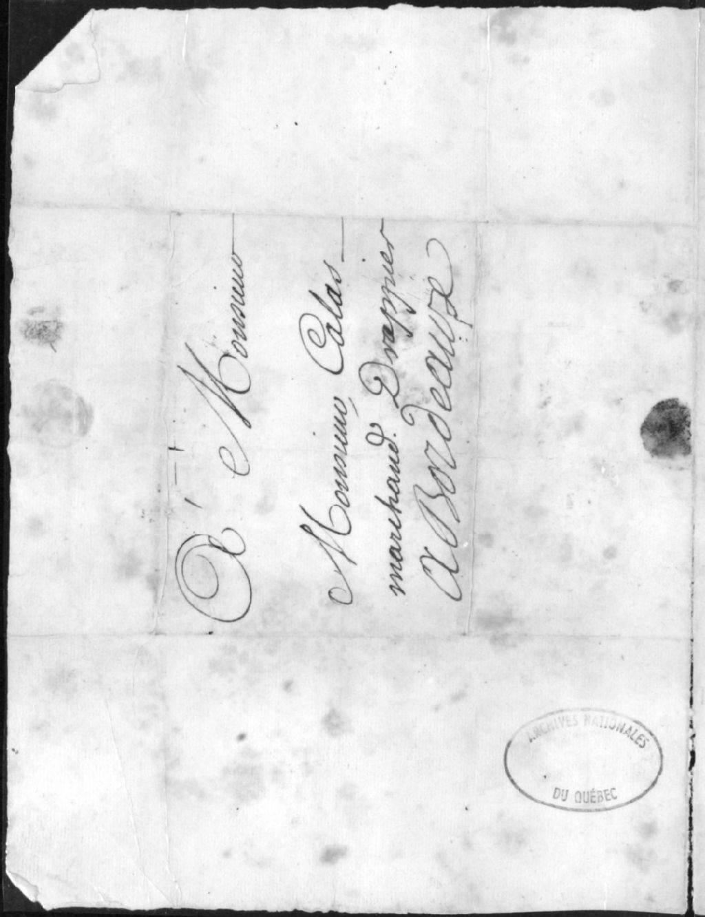 - Lettre de Louis Prat à M. Calas (drappier à Bordeaux)