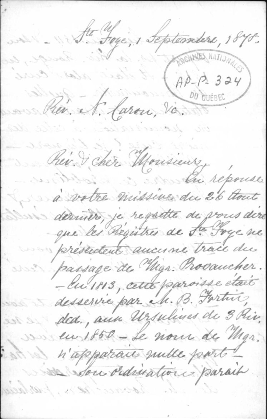 - Lettre de l'Abbé Jérôme Sasseville
