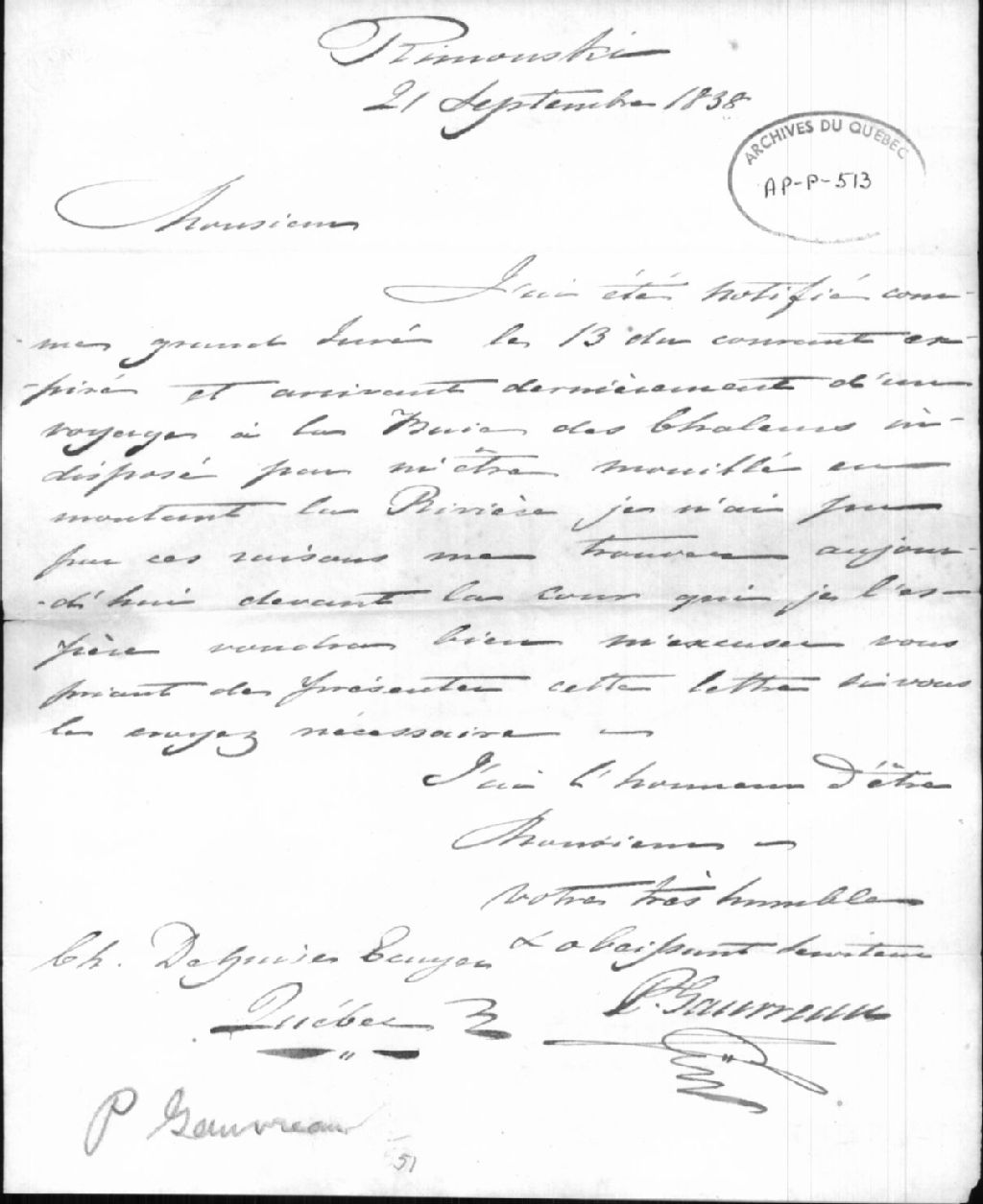 Lettre de P. Gauvreau