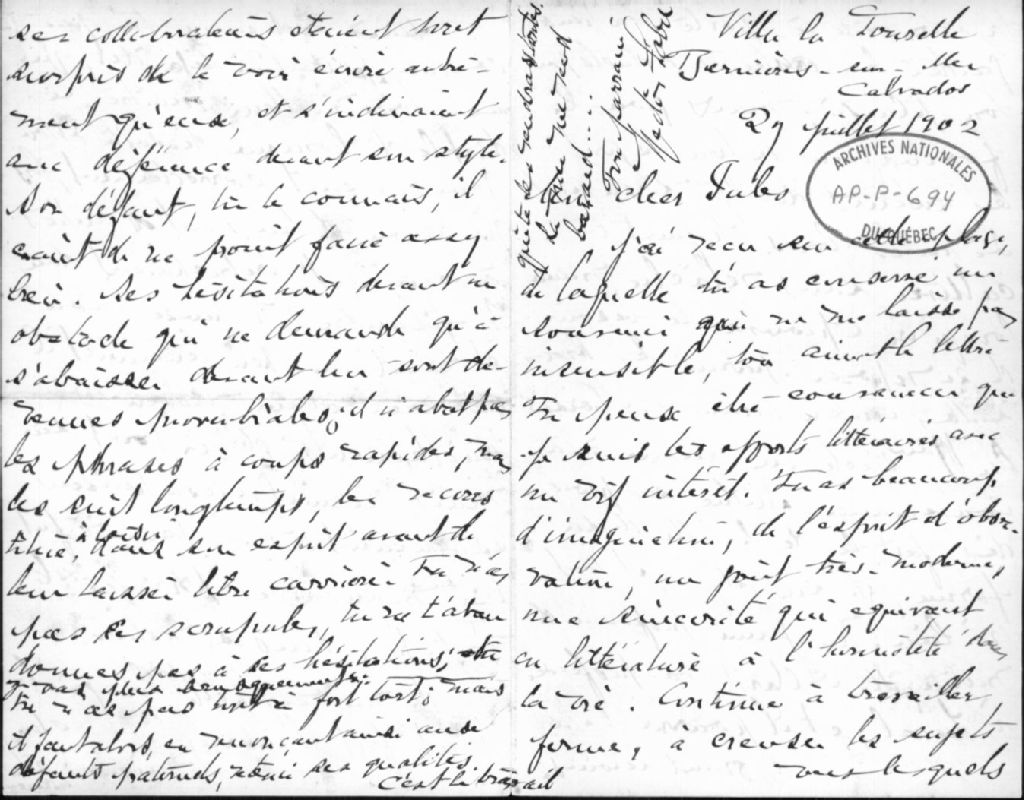 - Lettre d'Hector Fabre, à son filleul Jules: il est question de la formation littéraire de ce dernier