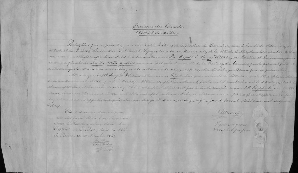 - Engagement de Joseph Filteau comme régistraire du comté de Lotbinière