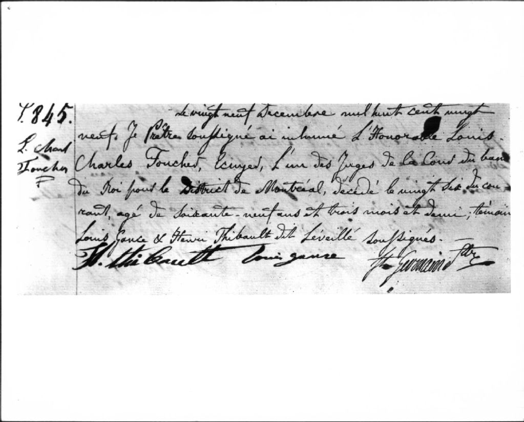 Acte de sépulture de Louis-Charles Foucher, 29 décembre 1829, Archives nationales à Québec, Collection Centre d'archives de Québec, (03Q,P1000,S3,D751).