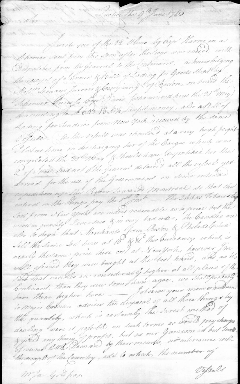 - Lettre de John Gray à James Goldfrap concernant le siège de Québec