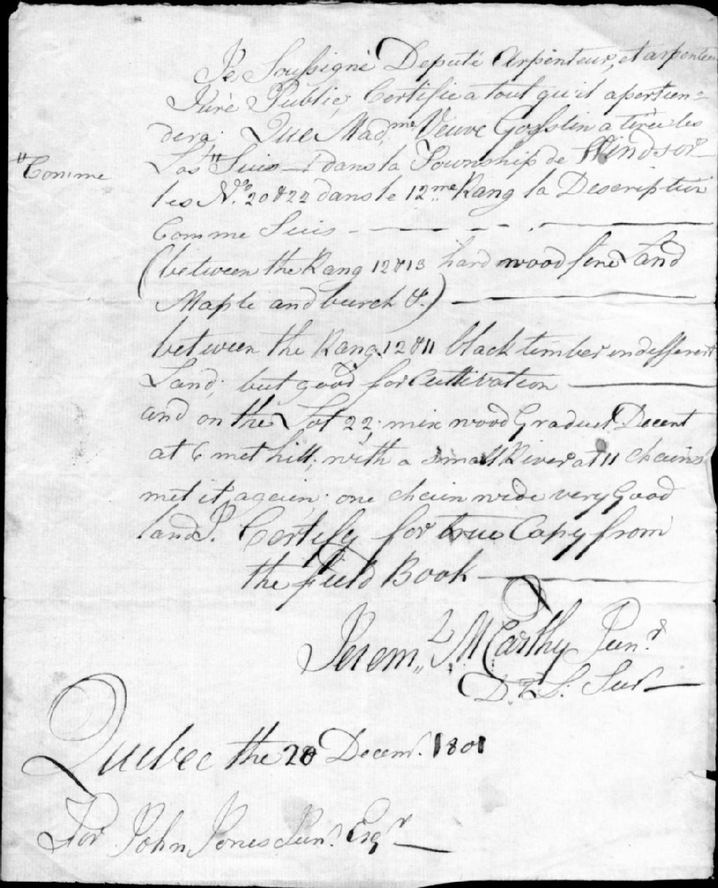 - Ce dossier est constitué d'un procès-verbal de deux lots dans le canton de Windsor en copie manuscrite