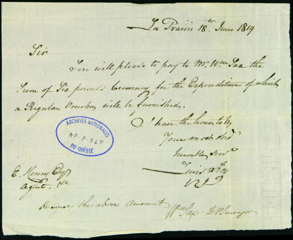 - Ce dossier est constitué de deux lettres de Louis Foy, de deux reçus signés Louis Foy, ainsi que de deux reçus signés Herman W. Ryland