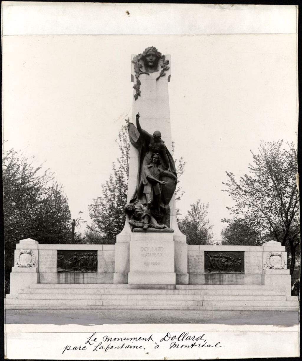 Monument Adam Dollard des Ormeaux, parc Lafontaine à Montréal, [vers 1923], Archives nationales à Québec, Collection Centre d'archives de Québec, (03Q,P1000,S4,D19,P101), Photographe non identifié.