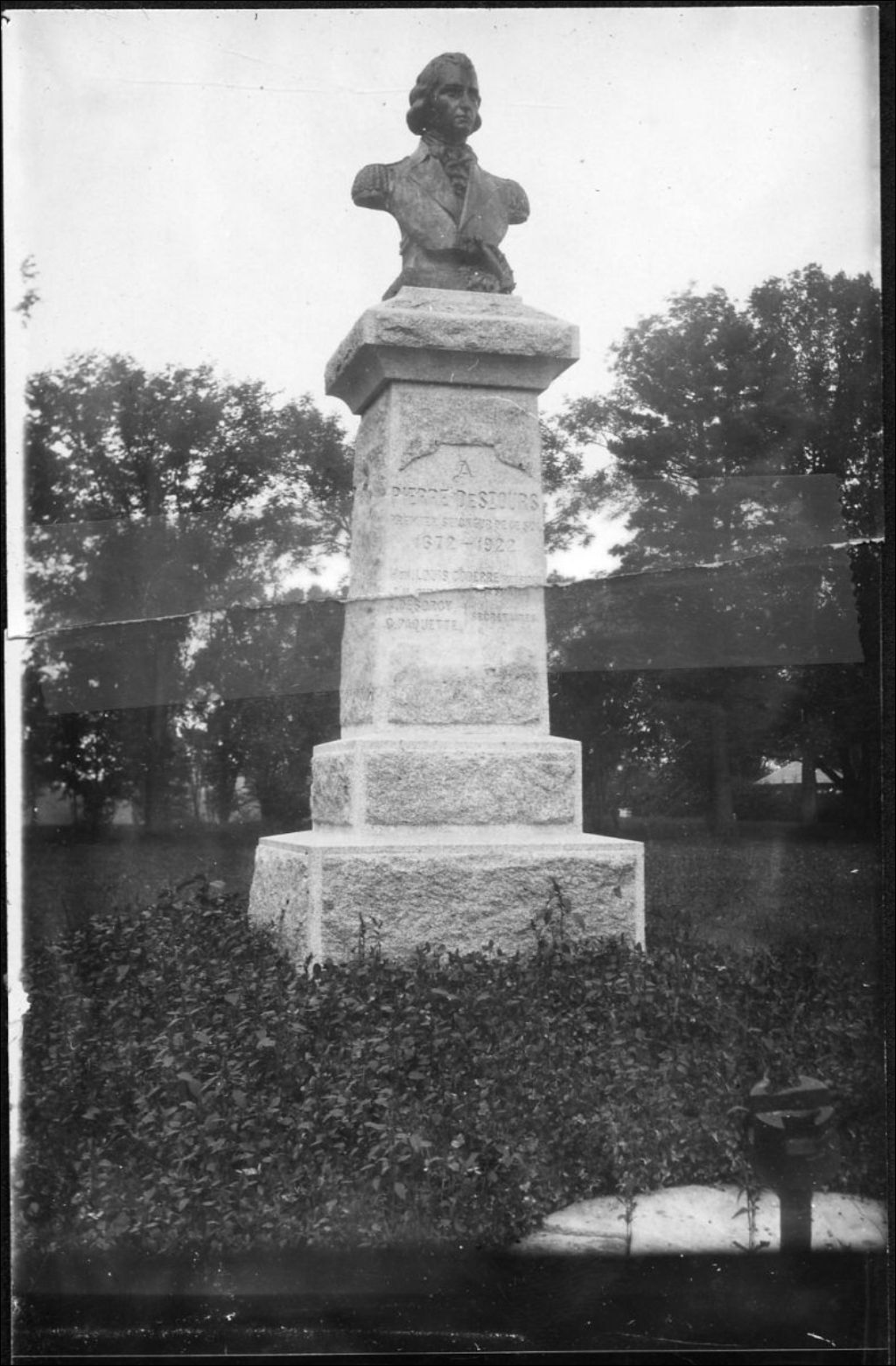 Le buste de Pierre de Saint-Ours à Saint-Ours sur le Richelieu, [vers 1922], Archives nationales à Québec, Collection Centre d'archives de Québec, (03Q,P1000,S4,D19,P189), Photographe non identifié.