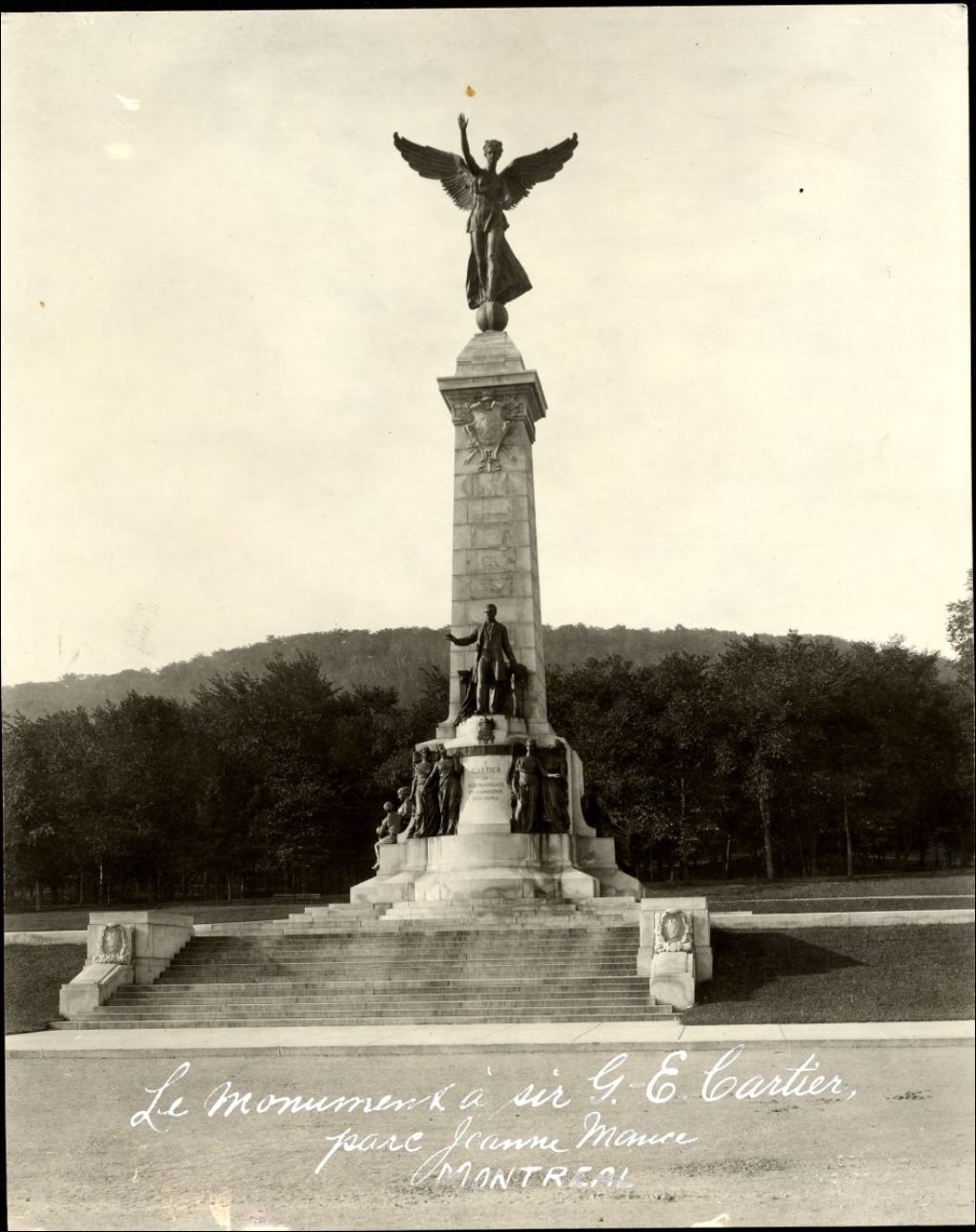 Monument de Sir Georges-Étienne Cartier au parc Jeanne-Mance à Montréal, [vers 1923], Archives nationales à Québec, Collection Centre d'archives de Québec, (03Q,P1000,S4,D19,P69), Notman.