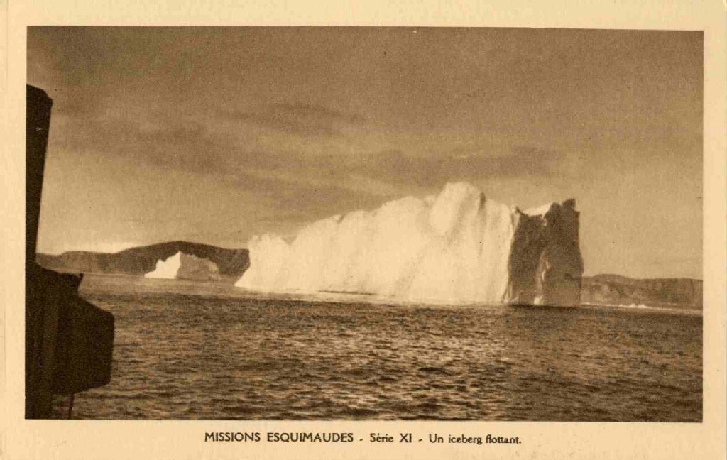 Mission Esquimaudes, série 11, Un iceberg flottant, [vers 1915], Archives nationales à Québec, Collection Centre d'archives de Québec, (03Q,P1000,S4,D31,P108), Photographe non identifié.
