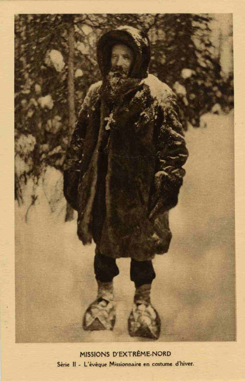 Mission d'Extrême-Nord Canadien, série 2, l'évêque Missionnaire en costume d'hiver, [vers 1915], Archives nationales à Québec, Collection Centre d'archives de Québec, (03Q,P1000,S4,D31,P14), Photographe non identifié.