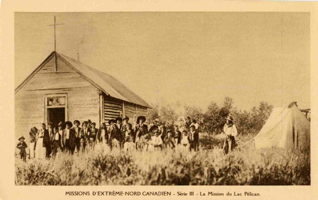 Mission d'Extrême-Nord Canadien, série 3, La Mission du Lac Pélican, [vers 1915], Archives nationales à Québec, Collection Centre d'archives de Québec, (03Q,P1000,S4,D31,P21), Photographe non identifié.