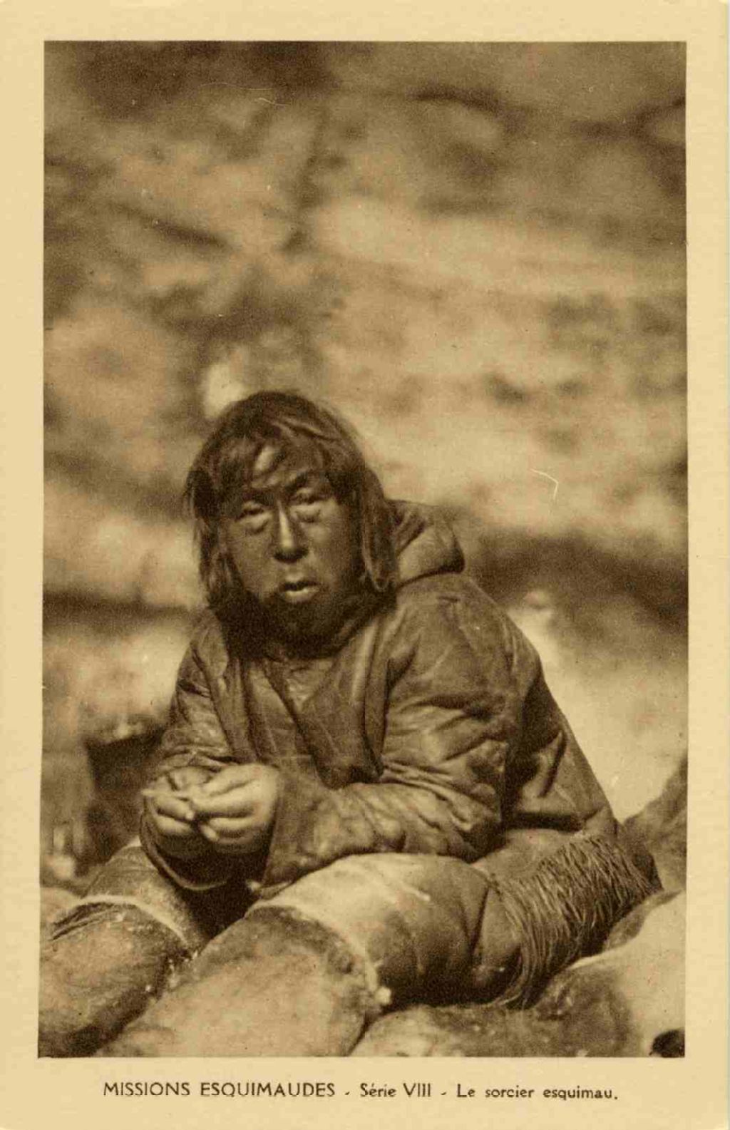 Mission Esquimaudes, série 8, Le sorcier esquimau (Inuit), [vers 1915], Archives nationales à Québec, Collection Centre d'archives de Québec, (03Q,P1000,S4,D31,P72), Photographe non identifié.
