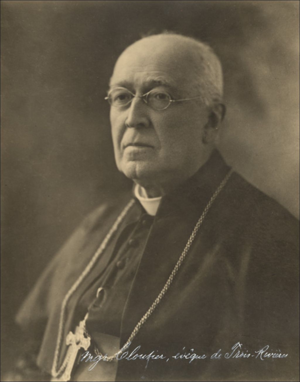 François-Xavier Cloutier, évêque, [Vers 1930], Archives nationales à Québec, Collection Centre d'archives de Québec, (03Q,P1000,S4,D83,PC128), Photographe non identifié.