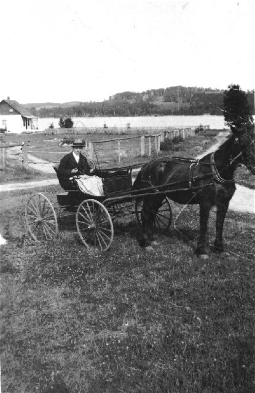 Homme en boghei (voiture tirée par un cheval), [192-?], Archives nationales à Gatineau, Fonds Comité des Fêtes de Chénéville, (07H,P83,D113), Photographe non identifié.