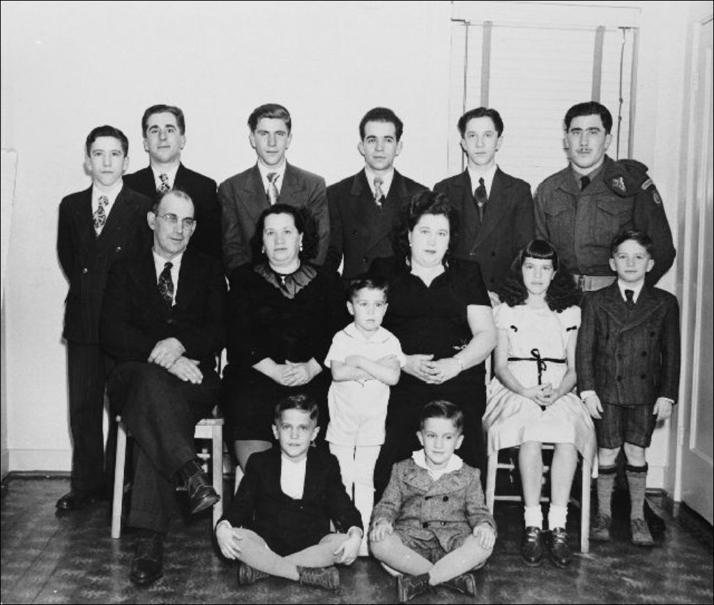 Portrait d'une famille de 12 enfants (un des garçons porte un habit de militaire)