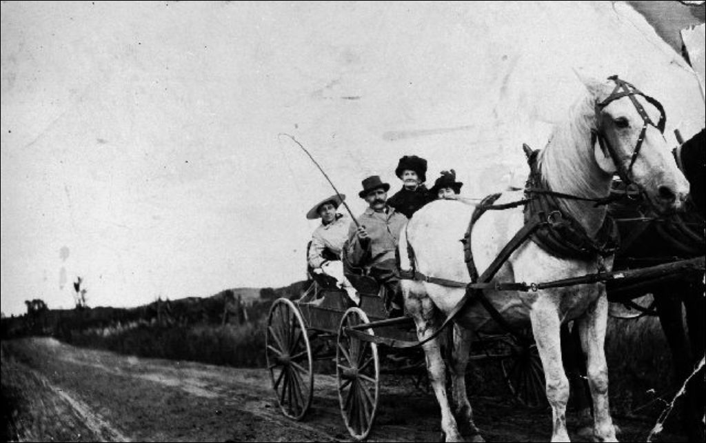 Lucie Servant, Noël Périard et sa femme Ezilda Servant dans une carriole tirée par des chevaux