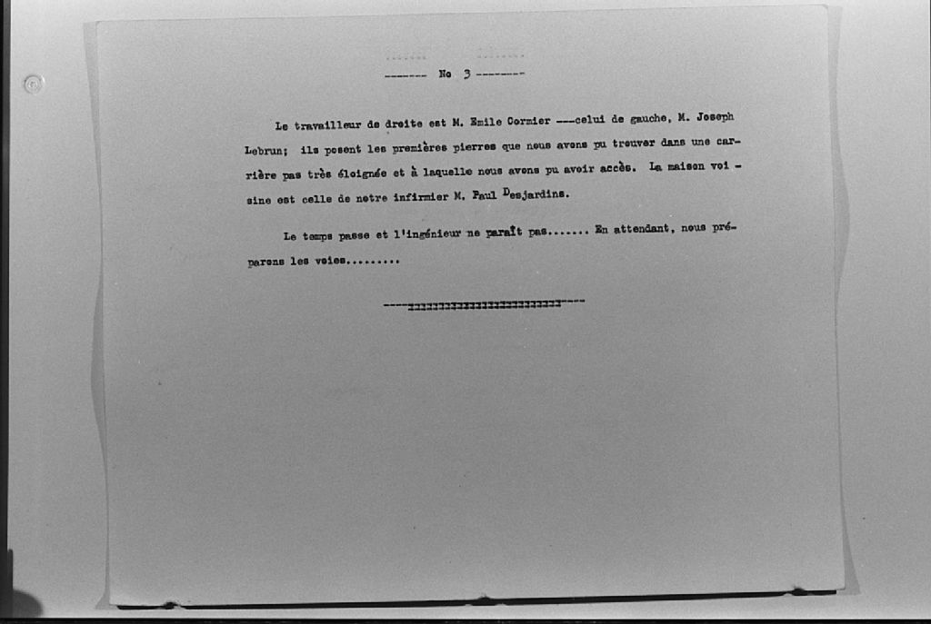 Pose de la pierre pour la construction de la grotte (texte) à Havre-Saint-Pierre