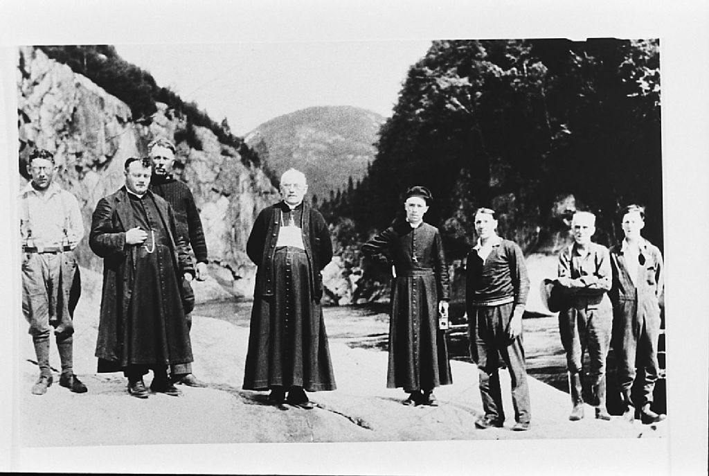 Monseigneur Julien-Marie Leventoux en voyage de pêche, Négatif reproduit en 1983(original créé en 1933), Archives nationales à Sept-Îles, Fonds Société historique de Havre-Saint-Pierre inc, (09N,P19,S1,SS1,P16), Société historique de Havre Saint-Pierre.