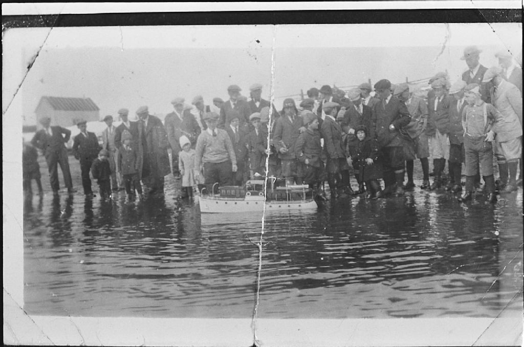 Bateau St-Pierre(miniature), Négatif reproduit en 1983(original créé en 1933), Archives nationales à Sept-Îles, Fonds Société historique de Havre-Saint-Pierre inc, (09N,P19,S1,SS1,P302), Société historique de Havre Saint-Pierre.