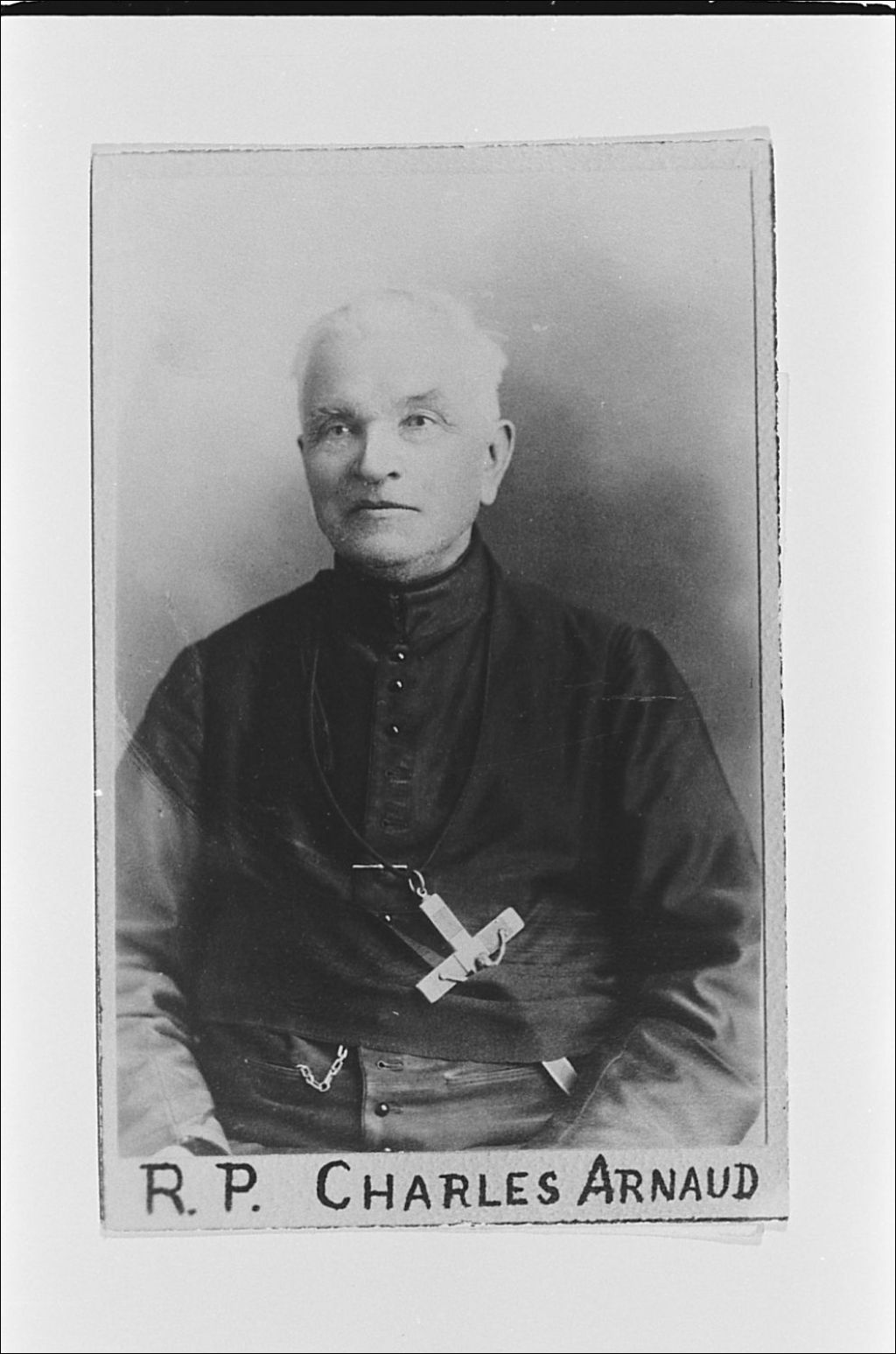 Le père Charles Arnaud, Négatif reproduit en 1983(original créé en 1857), Archives nationales à Sept-Îles, Fonds Société historique de Havre-Saint-Pierre inc, (09N,P19,S1,SS1,P309), Société historique de Havre Saint-Pierre.