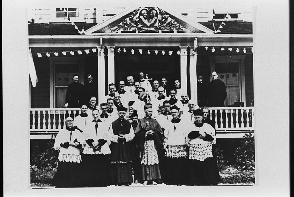 Cinquantenaire de l'arrivée des Pères eudistes, Négatif reproduit en 1983(original créé en 1954), Archives nationales à Sept-Îles, Fonds Société historique de Havre-Saint-Pierre inc, (09N,P19,S1,SS1,P32), Société historique de Havre Saint-Pierre.