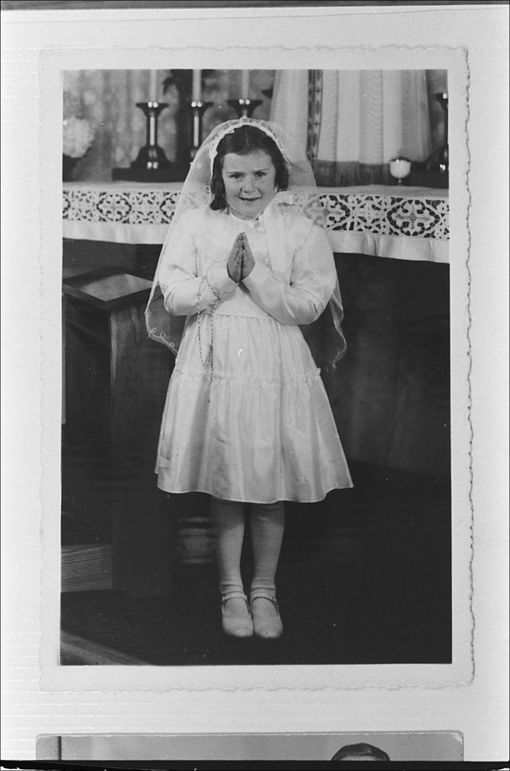 Première communion, Négatif reproduit en 1983 (original créé vers 1950), Archives nationales à Sept-Îles, Fonds Société historique de Havre-Saint-Pierre inc, (09N,P19,S1,SS1,P504), Société historique de Havre Saint-Pierre.