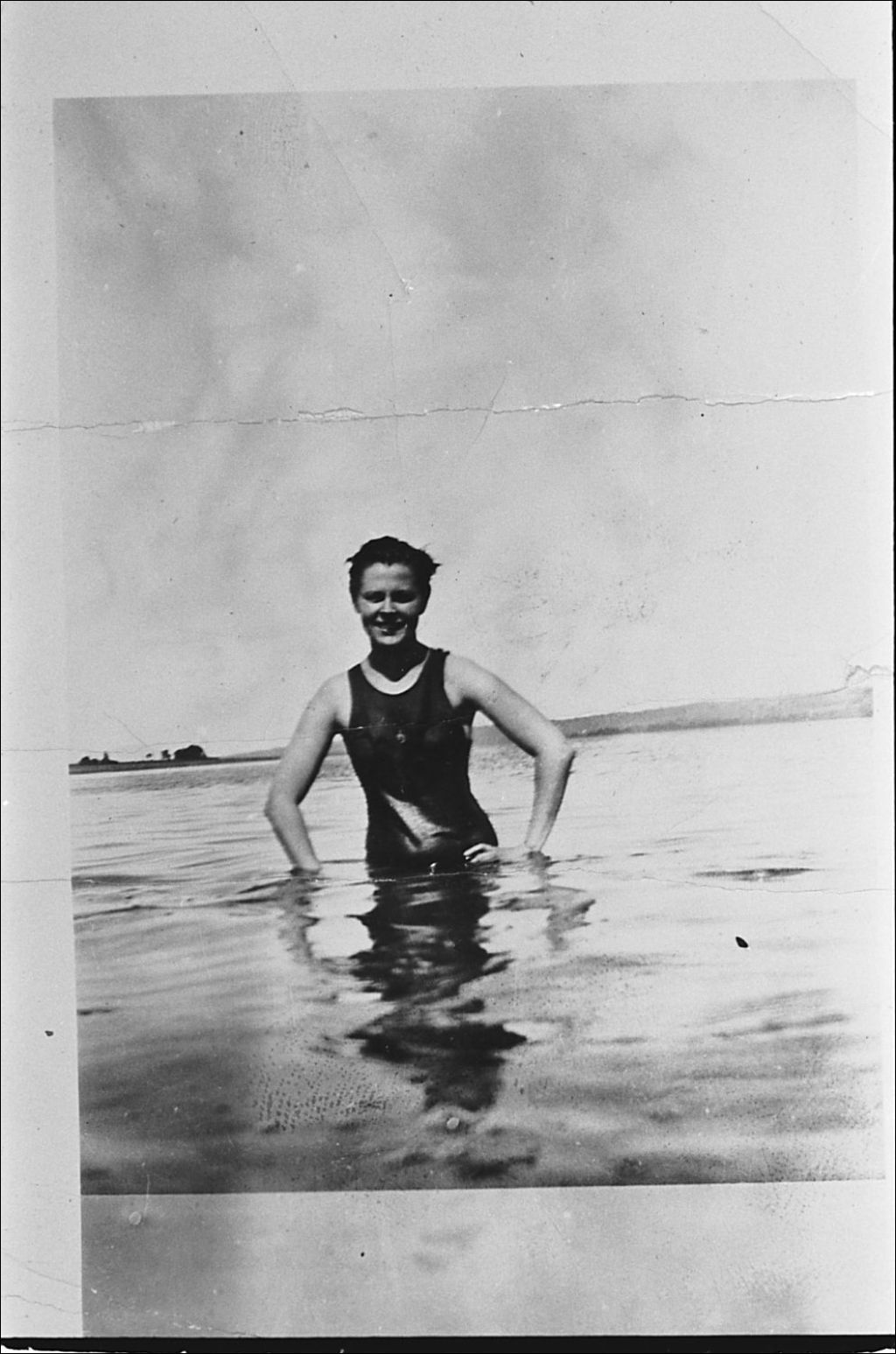 Baignade, Négatif reproduit en 1983(original créé en 1940), Archives nationales à Sept-Îles, Fonds Société historique de Havre-Saint-Pierre inc, (09N,P19,S1,SS1,P596), Société historique de Havre Saint-Pierre.