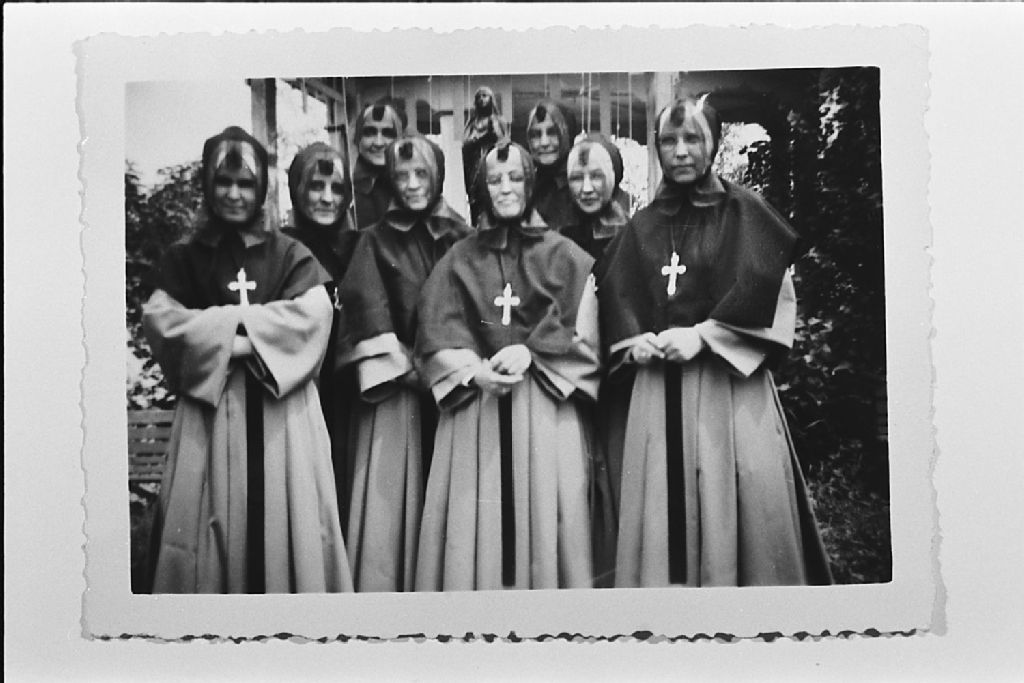 Soeur Sainte-Élisa avec un groupe des Soeurs de la Charité, Négatif reproduit en 1983 (original créé vers 1935), Archives nationales à Sept-Îles, Fonds Société historique de Havre-Saint-Pierre inc, (09N,P19,S1,SS1,P643), Société historique de Havre Saint-Pierre.