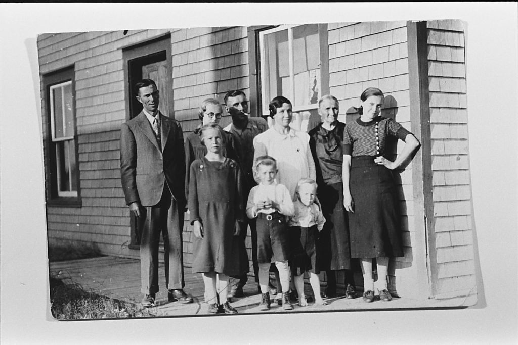 La famille Cormier à Havre-Saint-Pierre, Négatif reproduit en 1983 (original créé vers 1935), Archives nationales à Sept-Îles, Fonds Société historique de Havre-Saint-Pierre inc, (09N,P19,S1,SS1,P698), Société historique de Havre Saint-Pierre.