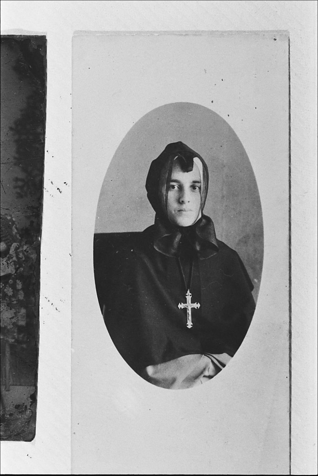 Mère Saint-Antonio, soeur de la charité, Négatif reproduit en 1983 (original créé vers 1932), Archives nationales à Sept-Îles, Fonds Société historique de Havre-Saint-Pierre inc, (09N,P19,S1,SS1,P753), Société historique de Havre Saint-Pierre.