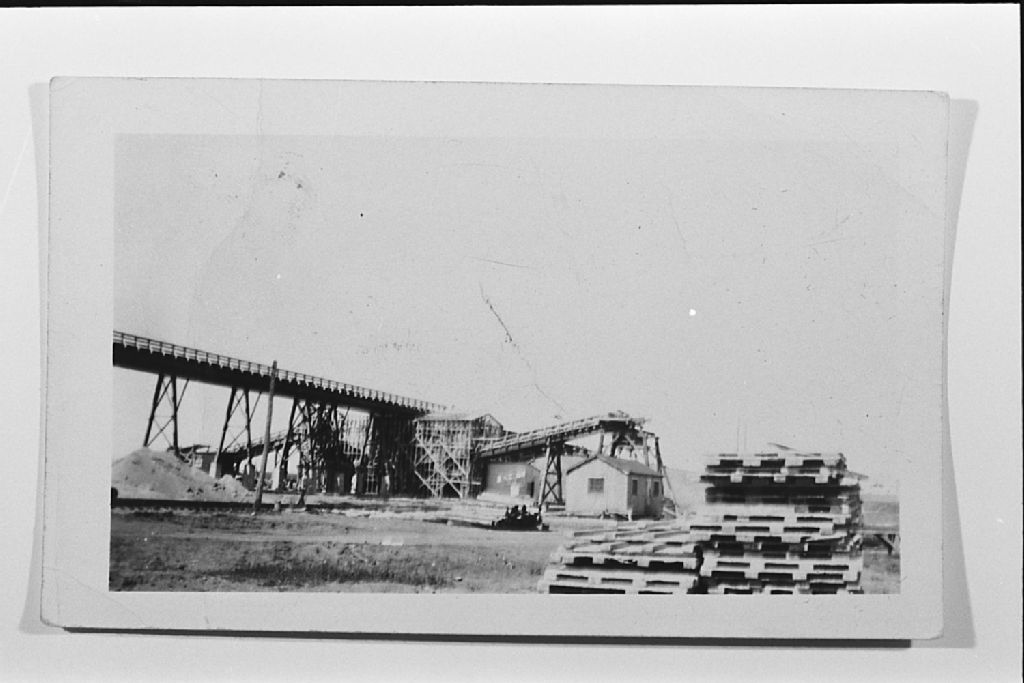 Mine Q.I.T. Fer et Titane inc, Négatif reproduit en 1983 (original créé vers 1950), Archives nationales à Sept-Îles, Fonds Société historique de Havre-Saint-Pierre inc, (09N,P19,S1,SS1,P789), Société historique de Havre Saint-Pierre.