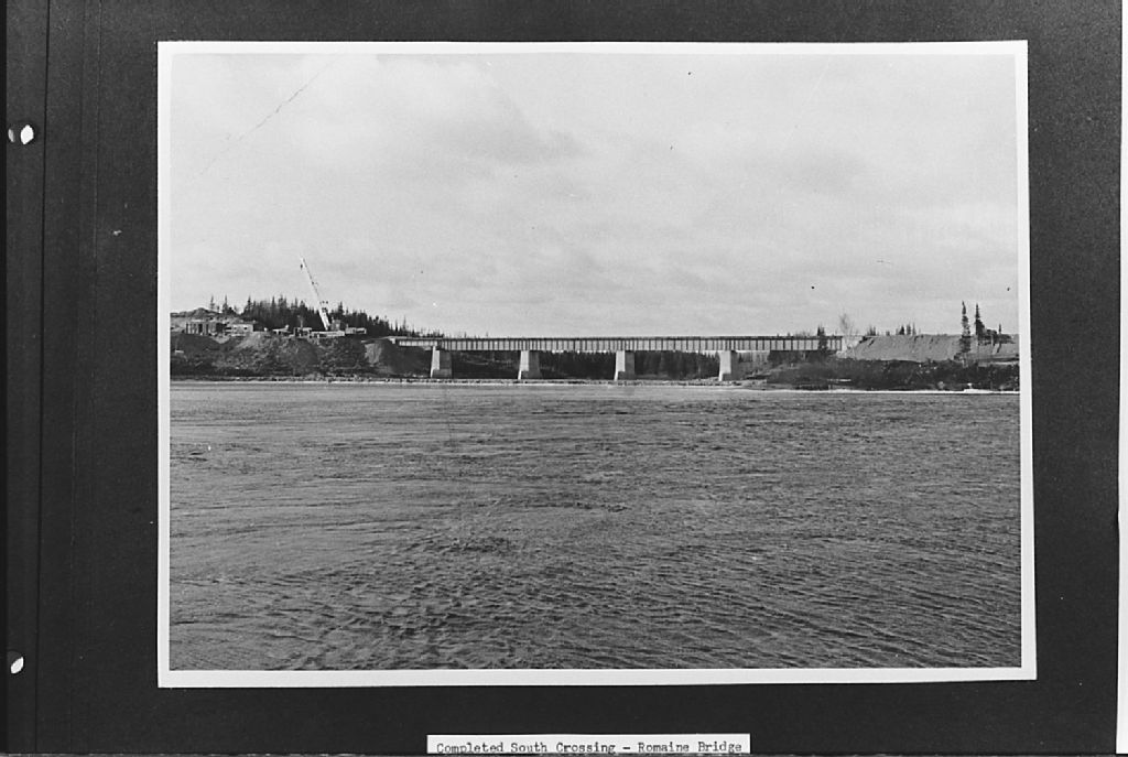 Rivière Romaine section sud, Négatif reproduit en 1983(original créé en 1949), Archives nationales à Sept-Îles, Fonds Société historique de Havre-Saint-Pierre inc, (09N,P19,S1,SS1,P90), Société historique de Havre Saint-Pierre.