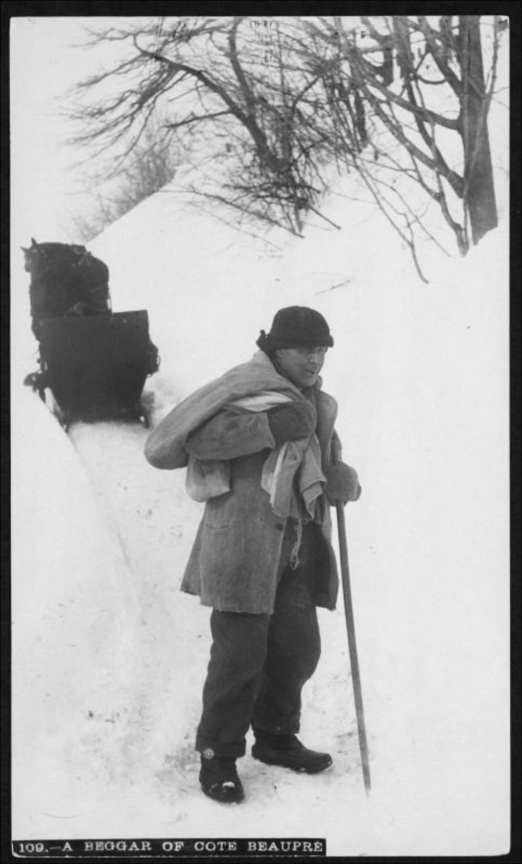 Mendiant à Beaupré, [vers 1900], Archives nationales à Québec, Fonds J. E. Livernois Ltée, (03Q,P560,S1,P109), Photographe non identifié.