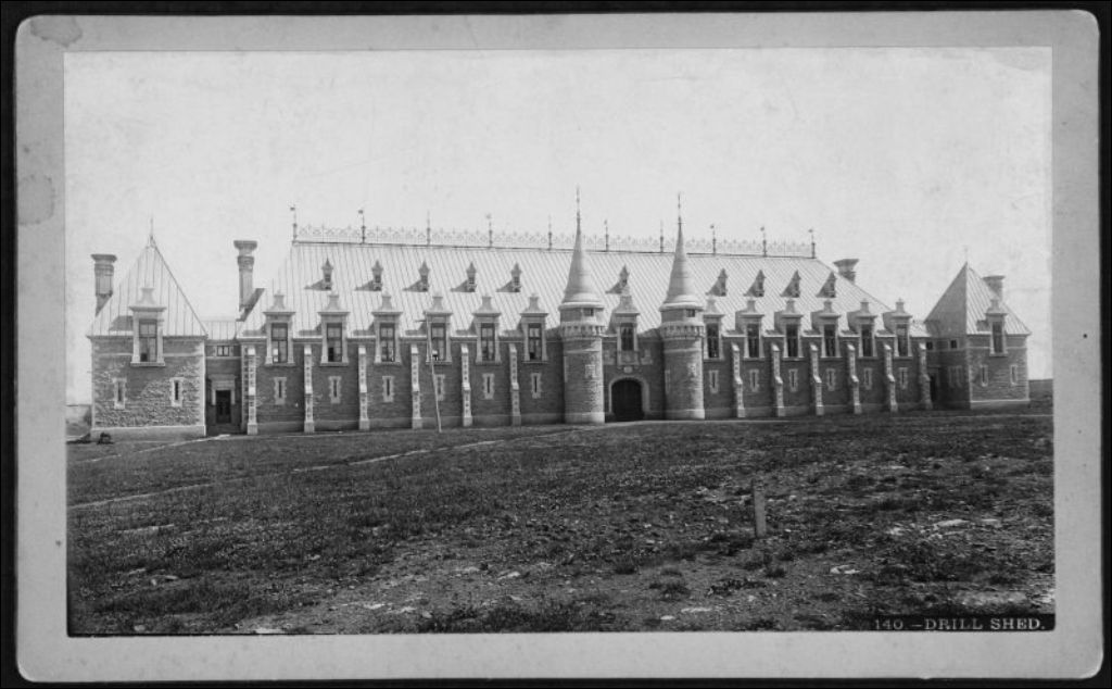 Façade du Manège militaire, [vers 1900], Archives nationales à Québec, Fonds J. E. Livernois Ltée, (03Q,P560,S1,P140), Photographe non identifié.