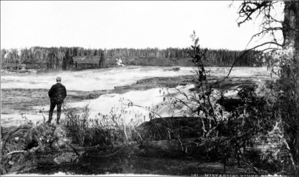 Pêcheur sur la rive de la rivière Mistassibi, [vers 1900], Archives nationales à Québec, Fonds J. E. Livernois Ltée, (03Q,P560,S1,P141), Photographe non identifié.