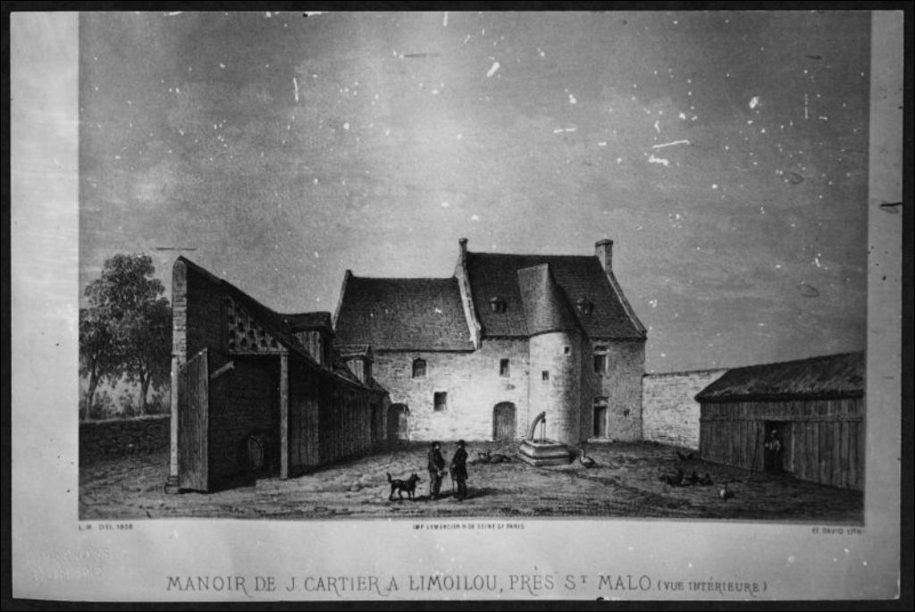 Reproduction photographique d'une lithographie représentant le Manoir de Jacques Cartier à Limoilou, près de Saint-Malo, [vers 1900], Archives nationales à Québec, Fonds J. E. Livernois Ltée, (03Q,P560,S1,P242), Photographe non identifié.