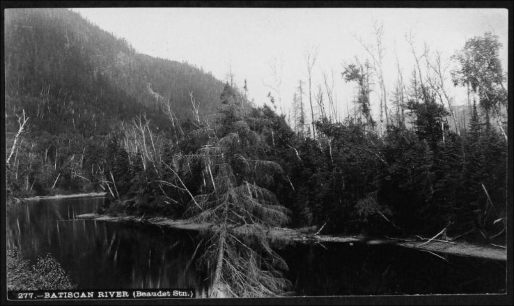 Vue sur la rivière Batiscan, [vers 1900], Archives nationales à Québec, Fonds J. E. Livernois Ltée, (03Q,P560,S1,P277), Photographe non identifié.