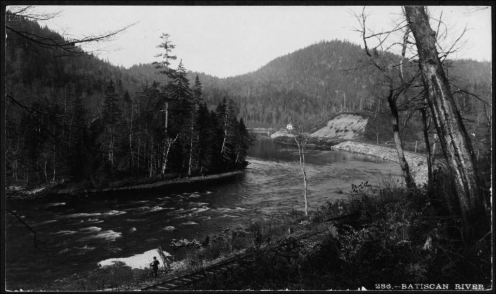 Vue sur la rivière Batiscan, [vers 1900], Archives nationales à Québec, Fonds J. E. Livernois Ltée, (03Q,P560,S1,P286), Photographe non identifié.