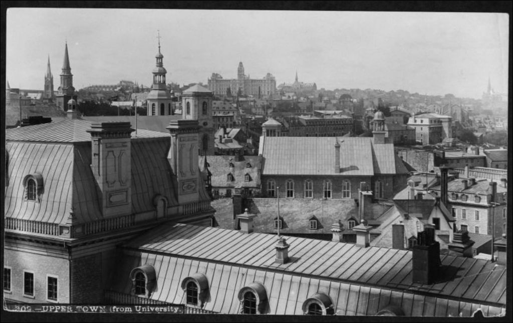 Vue sur la Haute-Ville de Québec prise de l'Université Laval, [vers 1880], Archives nationales à Québec, Fonds J. E. Livernois Ltée, (03Q,P560,S1,P309), Photographe non identifié.