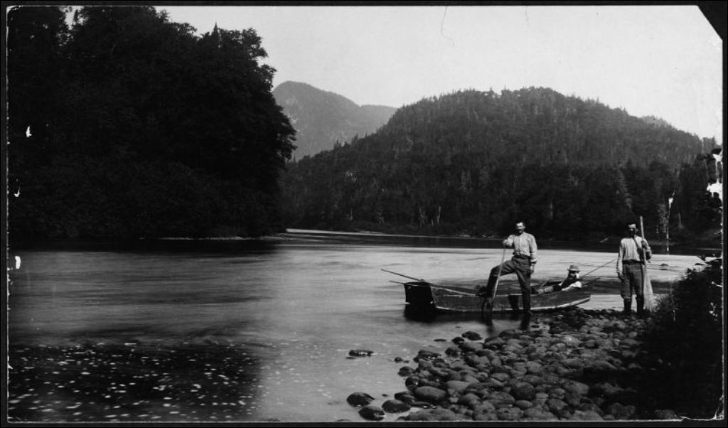 Pêcheurs sur la rivière Jacques-Cartier, [vers 1900], Archives nationales à Québec, Fonds J. E. Livernois Ltée, (03Q,P560,S1,P38), Photographe non identifié.