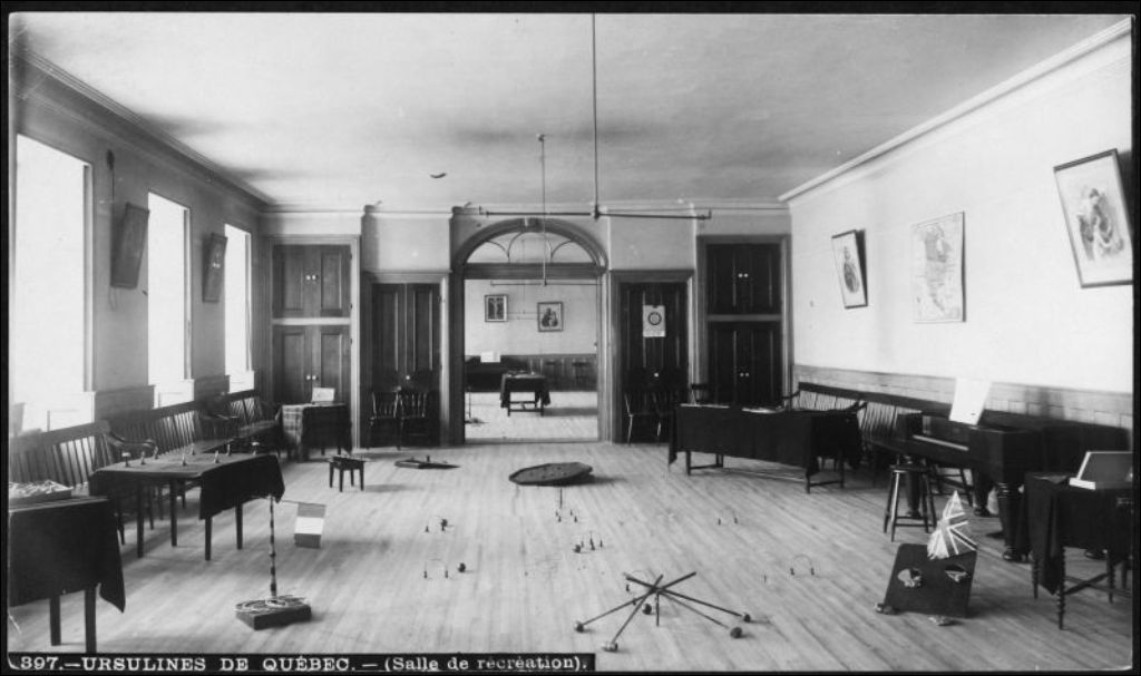 Salle de récréation, Ursulines de Québec, [vers 1900], Archives nationales à Québec, Fonds J. E. Livernois Ltée, (03Q,P560,S1,P397), Photographe non identifié.