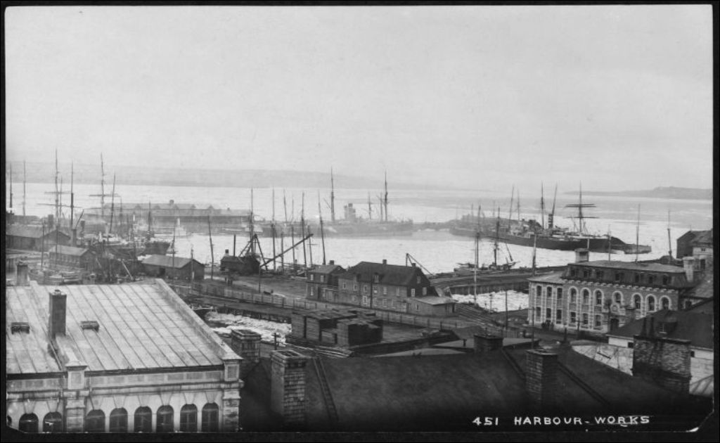 Port de Québec, 1890, Archives nationales à Québec, Fonds J. E. Livernois Ltée, (03Q,P560,S1,P451-1), Photographe non identifié.